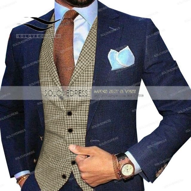 Mens Suit Vest Lapel V Neck Wool Wool Plaid Casual Formal Business Vest Waistcoat Groomman For Wedding Green/Brown/Grey/Coffe