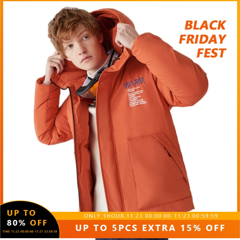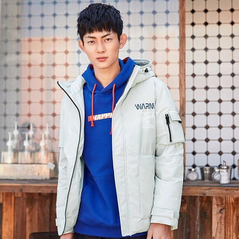 SEMIR Men Down Jacket 2020 Winter New Loose Hooded Letter Print Embroidered Warm Jacket Workwear Windbreak coat man