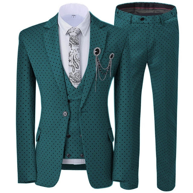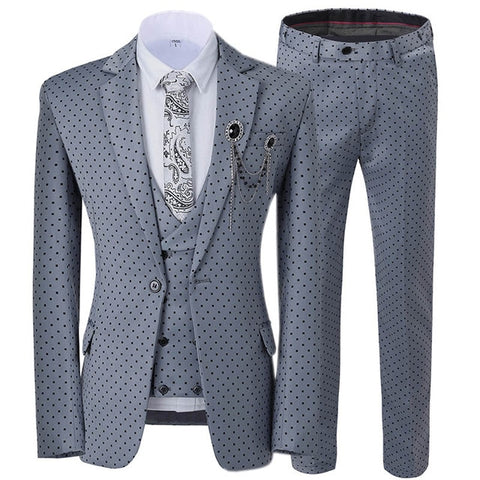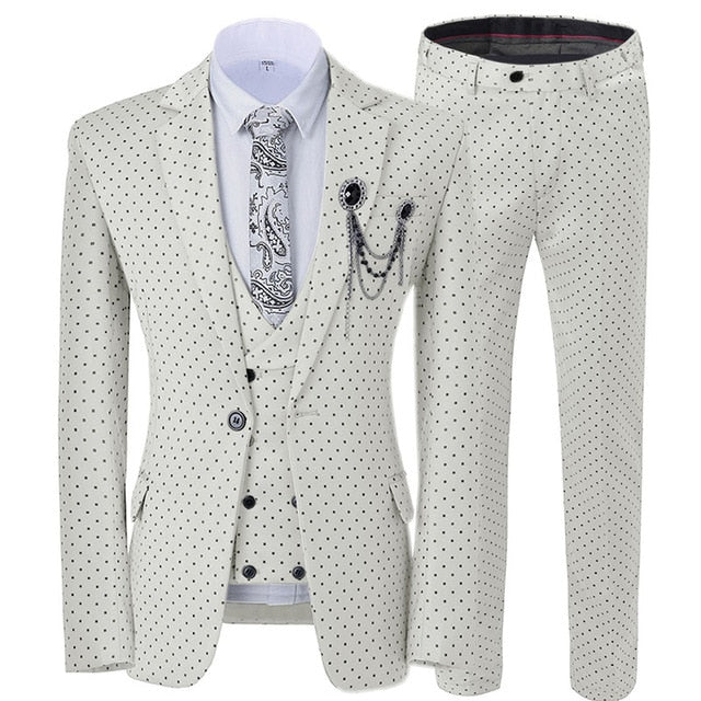Three Pieces Men's Wedding Suit Three Pieces Dots Printed Slim Fit Notch Lapel Tuxedos Tailcoat Best Men Double Breasted Vest