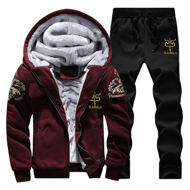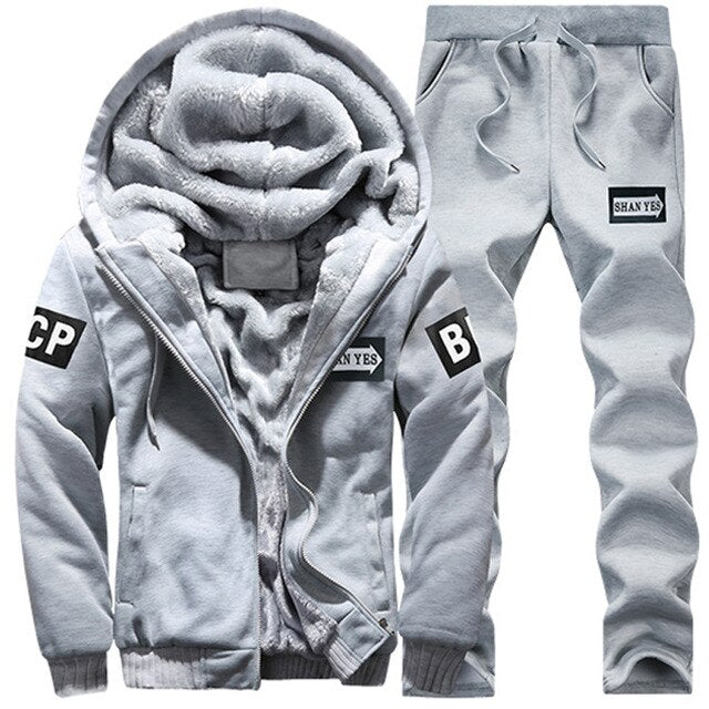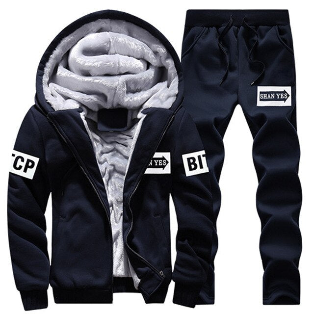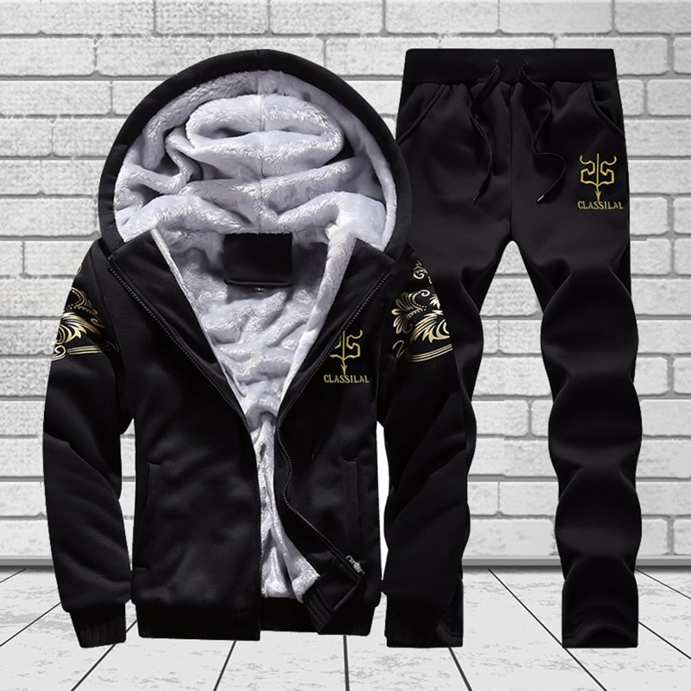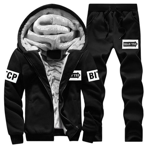 2020 Autumn Winter Men Outfit Set Winter Fashion Men Clothes Outfits Thick Warm Zipper Hoodie and Pants Set 2 Piece Tracksuit
